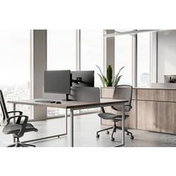 Stolní držák monitoru Nero disponuje manuálním nastavením výšky a hloubky, pomocí kterých si můžete nastavit pracovní plochu podle svých přání. Chytrý 180° zajišťovací mechanismus navíc zabraňuje tomu, aby se držák došel do styku se stěnou nebo přepážkou, pokud je umístěn v blízkosti stěny. Svařovaná patice zajišťuje optimální stabilitu a stabilitu. Praktický systém pro vedení kabelů zajišťuje čisté vedení kabelů. Kromě toho nabízí podstavec DS60-600BL1 pohodlnou odkládací plochu pro telefon a zajišťuje tak pohodlný psací stůl.