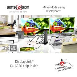 CSV-1460 - Docking stanice SenseVision USB 3.0 Dual Display 4K 60Hz byla navržena tak, aby splňovala všechny požadavky na připojení. Disponuje 6 USB 3.0 porty, konektory na sluchátka a mikrofon, gigabitovým ethernetovým portem a 2 výstupy DisplayPort.