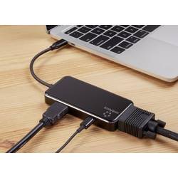 Malá kovová dokovací USB-C stanice, k níž lze přes HDMI nebo VGA port jednoduše připojit externí monitor nebo projektor. Připojte jednoduše svůj notebook nebo tablet (není třeba instalovat žádné ovladače) a využijte výhod rychlých USB připojení.