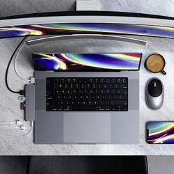 Ideální společník pro MacBook: S pro Hub Max lze 2021 MacBook pro jednoduše rozšířit o další užitečné přípojky. Adaptér je vybaven nejen konektorem USB a, gigabitovým Ethernetem, konektorem jack 3,5 mm, portem USB-C pro přenos dat, konektorem HDMI a sloty pro SD a microSD kartu, ale také portem USB-C na základě protokolu USB 4.0. Inovativní technologie USB4 umožňuje přenos dat rychlostí až 40 Gbit/s, nabíjení rychlostí až 96 W a výstup displeje až 6K a 60 Hz. Tento praktický USB-C adaptér lze vzít všude s sebou a je bezpečně připojen k 2021 Macbook pro přes Dual USB-C konektor. Pro větší stabilitu má navíc výklopný audio konektor jack. Hub byl navržen speciálně pro použití s M1 MacBook Pros (2021), ale lze jej použít i se staršími modely MacBook, které mají nejméně dva USB-C konektory. Díky elegantnímu designu s hliníkem se ideálně hodí k MacBooku.