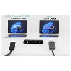 Díky integrovaným LAN portům a podpoře instalace za monitorem je tato dokovací stanice ideálním doplňkem pro skutečné profesionály. Dokovací stanici lze použít jak ve spojení s notebookem (bez nabíječky USB-C), tak i s USB-C nabíječkou (není součástí dodávky). V tomto případě podporuje nabíjení notebooku nebo tabletu s výkonem až 85 W.