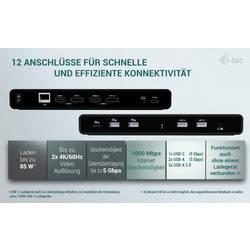Výkonná a přesto cenově dostupná dokovací stanice, která podporuje výstup až na dva externí monitory ve vysokém rozlišení (až 4K / 60 Hz). Dokovací stanice může být použita prakticky se všemi notebooky, protože podporuje připojení na všechny běžné porty: USB 3.0, USB-C, USB4 a Thunderbolt“ 3/4 a podporuje všechny běžné současné operační systémy.