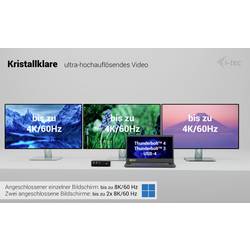 S Thunderbolt 5 a notebooky pro Windows můžete připojit až čtyři monitory (kryt na notebook musí být zavřený). S Apple Apple notebooky s Mac OS jsou podporovány maximálně dva externí monitory.