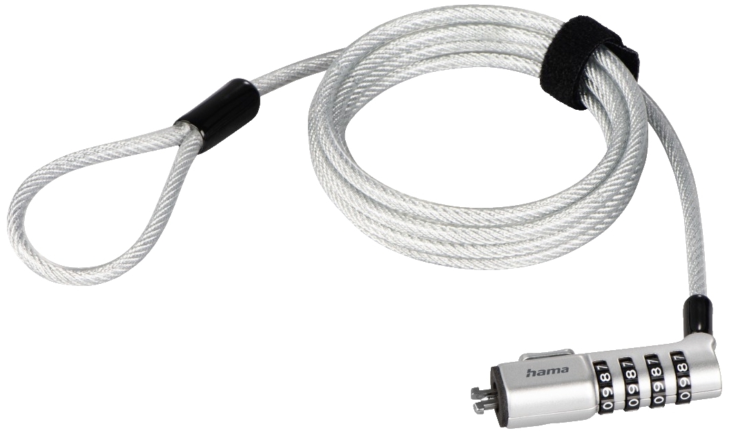 Hama kabelový zámek pro notebooky, kódový číslicový zámek nejsou nutné klíče, kabelová páska se suchým zipem umožňuje kvalitní management kabelů 180 cm
