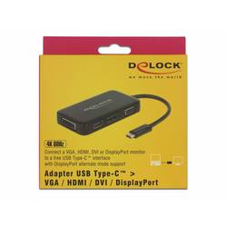 Delock USB 2.0 adaptér [1x USB-C® zástrčka - 1x VGA zásuvka, HDMI zásuvka, DVI zásuvka 24+5pólová, zásuvka DisplayPort] 63929 0.15 m