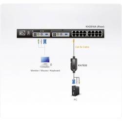 KVM PS/2 kabelový adaptér KA7920 propojí KVM switch s konektory VGA, PS/2 pro myš a PS/2 pro klávesnici na cílovém počítači. Díky malým rozměrům a nízké hmotnosti se switch hodí do serverů instalovaných do racku nebo nastojato.