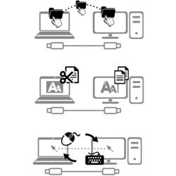 Kabel s přepínačem umožňuje snadný a současný přístup ke dvěma počítačům, a to pouze s jedním monitorem, klávesnicí a myší. Integrovaný přenos souborů funkce pro zálohování, mazání a přenos souborů mezi připojenými počítači. Není třeba sledovat druh operačního systému, zařízení pracuje s kterýmkoli. Součástí je také sdílení systémové schránky (Clipboard) pro rychlou výměnu dat pomocí kopírování a vkládání.