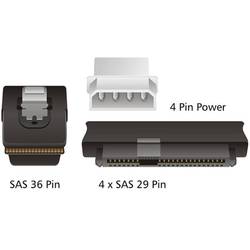 S tímto 50cm dlouhým mini SAS kabelem na 4x SAS 29pin můžete např. připojit ovladač s mini SAS 36pinovým konektorem (SFF 8087) na 4 SAS (SFF 8482) pevné disky.