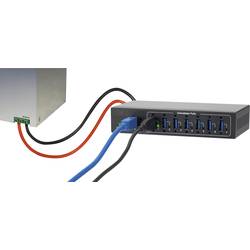 Tento stabilní USB 3.0 hub, je schopný i průmyslového využití, můžete ho montovat na stěnu či jiné plochy. Rozšíří váš arsenál USB portů o dalších 7 USB 3.0 zdířek. Díky velmi odolné konstrukci je USB hub vhodný především pro různé techniky systémů budov, a také pro průmyslová prostředí. 7portový USB hub podporuje USB 3.0 s vysokou rychlostí přenosu dat až 5 GB/s, je zpětně kompatibilní s přístroji, které disponují USB 2.0 a USB 1.1. Napájení probíhá přes zdířku hlavního proudu nebo přes 3pólovou připojovací svorku (9 - 40 V).