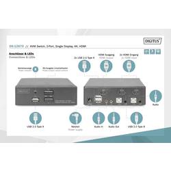 Digitus DS-12870 2 + 1 port přepínač KVM HDMI dálkové ovládání, klávesnice 3840 x 2160 Pixel
