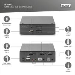 Digitus DS-12851 1 + 2 porty přepínač KVM DisplayPort 3840 x 2160 Pixel