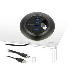 Tento hub od Delock lze vložit do otvoru v psacím stolu o průměru 60 mm nebo 80 mm, aby se využil k vedení kabelu k monitoru, klávesnici a myši. Současně nabízí rozbočovač čtyři USB zásuvky typu A. Přes konektor USB 3.0 typu a a konektor USB 2.0 typu a se stává příp. Napájení je zajištěno. Vzdálenost mezi volnými přípojkami nesmí být větší než 20 cm, protože jsou dva kabely navzájem propojeny.