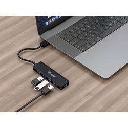 Tento USB 3.2 Gen 1 hub se 4 porty umožňuje rozšíření netbooku, notebooku nebo počítače o 4 další USB 3.2 Gen 1, přičemž se používá pouze bezplatný USB 3.2 Gen 1 konektor! Můžete bez problémů připojit až 4 USB zařízení nebo přístrojů k netbooku, notebooku nebo PC.