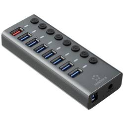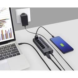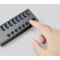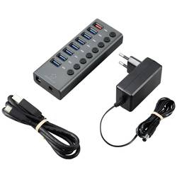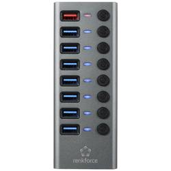 Renkforce RF-6049086 USB Hub 8 portů USB-A USB 3.2 Gen2 10 GBit/s lze spínat jednotlivě, se stavovými LED, s hliníkovým krytem stříbrnočerná RF-HUB-380