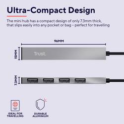 Trust 23786 USB Hub 4 porty USB-A USB 2.0 480 MBit/s Trust Halyx Aluminium 4-Port Mini USB Hub - Hub