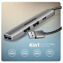 AXAGON HUE-STA USB Hub 4 porty USB-C®, USB-A 5 GBit/s šedá