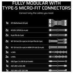 Corsair HX1500i SHIFT má dva kabel 12 v / 2 x 6 a poskytuje spolehlivý výstupní výkon až 1200 W pro nejnáročnější Builds, které jsou namířeny na 4K hry a machine Learning Workkloads.
