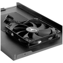Na horní straně je naistalován tichý ventilátor 120 mm, k dispozici je možnost instalovat další ventilátor o průměru 120 mm. Pokud není nainstalována optická jednotka, nabízí horní strana také místo pro 240 mm radiátor pro volitelný vodní chladič systému. Hořlavý: Všechny boční díly jsou vybaveny velkorysými otvory pro ventil a jsou vybaveny prachovými filtry. Výhodou zabudovaných grafických karet, které jsou nejlépe napájeny z bočních otvorů. Pro ještě větší optimalizaci ventilace může být na zadní straně namontován ventilátor o průměru 80 mm.