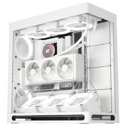 Showcase pouzdro v bílé, vertikální GPU sadě s PCIe 5.0, s ohnutým temperovaným glasem, až 11x 140 mm ventilátor,