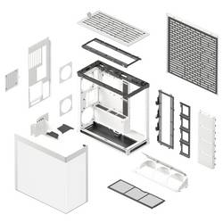 - Showcase pouzdro v bílé, vertikální GPU sada s PCIe 5.0, s ohnutým temperovaným glass až 11x 140 mm ventilátorem, prostor pro dva 420 mm radiátory současně, základní desky do E-ATX a GPUs až 470 mm, dva FAN huby