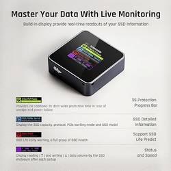 Podporuje předpověď životnosti SSD a identifikuje autentičnost informací, aby se zabránilo nákupu nekvalitních pevných disků: DOCKCASE - první inteligentní SSD pouzdro s HD displejem - dokáže uzavřít inteligentní rozpoznávání SSD disků, jakmile zapnete inteligentní SSD pouzdro. DOCKCASE může na první pohled poznávat a zobrazit stav SSD po zapnutí, životnost pevného disku, zapnuté časy a zbývající kapacitu. Bezpečné údaje, bezpečná práce.