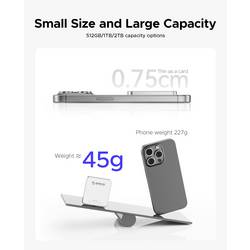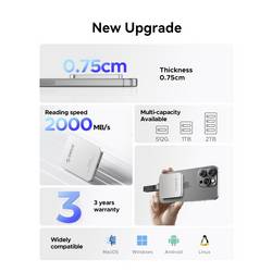 Přenosová rychlost 2050 MB/s a bezešvá kompatibilita se zařízeními Mac OS, Windows a Android umožňují efektivní využití více zařízení.
