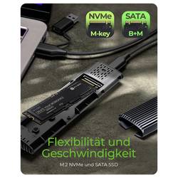 Podpora NVMe a SATA SSD disků - nemusíte kupovat více pouzder pro různé jednotky, protože funguje jak s NVMe, tak i se SATA M.2 SSD disky. S podporou rozhraní B-Key a B+M-Key získáte větší flexibilitu a nemusíte tak přepínat mezi jednotlivými typy diskových jednotek.