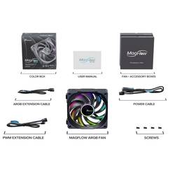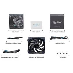 Ventilátor Seasonic Magflow ARGB je nový chladicí produkt z hlediska stylu a funkční modularity. Perfektně umístěné a vestavěné magnetické upevňovací body propojují větrací strany jednoduše pomocí spony. Snadná instalace šetří čas a optický PC tak, že mezi ventilátory není nutné pokládat žádné kabely.