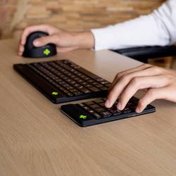 Zjistěte maximální svobodu při psaní s R-Go numerickým blokem Break. Číselnou klávesnici můžete obsluhovat levou nebo pravou rukou a sami určit, kde ji můžete umístit na psací stůl.Pokud ovládáte numerický blok ručně, který neovládá myš, zůstanou obě ruce při práci v rámci šířky ramen. To zátěž rozděluje na obě ruce. Ideální ideal v kombinaci s R-Go Compact Break a R-Go Split Break klávesnicí. Mimořádně tenký design zajišťuje, že zápěstí při psaní zůstane v přirozené, ploché poloze. Speciální nůžkový mechanismus na tlačítkách způsobuje lehký dotykový doraz, takže při poklepování potřebujete méně svalové námaze. Numerická klávesnice R-Go má integrovaný ukazatel pauzy, který zobrazí pomocí barevných signálů (zelená, oranžová, červená), kdy je čas přerušit práci.Pomůže vám připomenout pauzaNumerická klávesnice R-Go je vybavena LED displejem, který je řízen softwarem R-Go Break. LED na horním okraji klávesnice mění barvu, díky které ukazují, jak zdravé pracujete. Když se LED rozsvítí zeleně, znamená to, že pracujete zdravým způsobem. Oranžová znamená, že je čas na krátkou pauza a červená znamená, že jste zmeškali pauza. Tím získáte pozitivní zpětnou vazbu o vašem pracovním chování.Ergonomické kompaktní provedeníUmístěte-li numerický blok na myš na protilehlé straně klávesnice, zůstanou obě ruce při práci v rameni. Tím je zátěž rozdělena na obě ruce, čímž se zabrání přetížení. Ideální ideal v kombinaci s R-Go Compact Break a R-Go Split Break klávesnicí.Plochá klávesnice s lehkým tlačítkovým dorazemNumerická klávesnice R-Go je velmi plochá, takže na zápěstí působí přirozenou, uvolněnou pozici. Speciální nůžkový mechanismus na tlačítkách zajišťuje lehký tlačítkový doraz, který vyžaduje menší námahu při psaní.