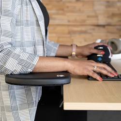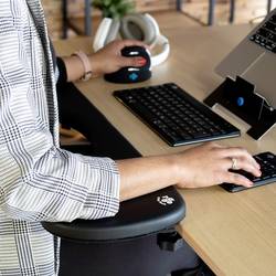 Ergonomická loketní opěrka R-Go poskytuje chudým optimální podporu při práci na obrazovce. Kulatý tvar slouží jako tzv. břišní parkování, které vám umožní přiblížit se ke stolu a podepření paží blízko těla. To zajišťuje držení těla v pravý poloze a zajišťuje uvolnění do ramen. Loketní opěrka je polstrovaná a je tedy měkká a pohodlná. Tato loketní opěrka je vhodná téměř na všechny psací stoly a může být připevněna dvěma způsoby.