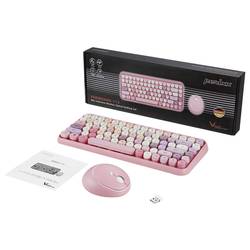 PERIDUO-713 bezdrátová mini klávesnice a stolní myš Desktop sada, retro Vintage design, růžová růžová, QWERTZ