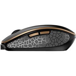 Optická a perfektně vhodná je také bezdrátová myš s mnoha funkcemi. Pogumované boční díly a kompaktní tvar zajišťují pocit při držení. Rozlišení lze nastavit pomocí 3 stupňů stisknutím tlačítka: 1000, 1600 nebo 2400 dpi. Dvoubarevná stavová LED vždy informuje o stavu baterie, stavu nabití, zvoleném rozlišení nebo stavu připojení. Další detaily, které splní všechna vaše přání, jsou velmi trvanlivá klavicí kolečka a magnetická možnost použití USB přijímače.
