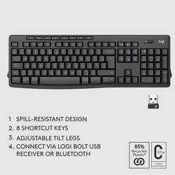 Kleště MK370 Combo for Business jsou nejprodávanější sadou Logitech Logitech pro podniky. Bezdrátová Duo pro vyšší produktivitu je ihned připravena k použití. Sada obsahuje klávesnici s ochranou proti stříkající vodě ve standardní velikosti, tichou myš, 8 předprogramovaných speciálních kláves a Logi Bolt pro bezpečná a spolehlivá bezdrátová spojení. Již Pairter Logi Bolt USB přijímač2 spojuje klávesnici a myš, což umožňuje snadné nastavení.