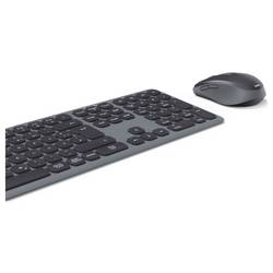- Současně lze připojit více zařízení pomocí multifunkčního zařízení: Sadu z klávesnice Office a optické 6-tlačítkové myši pro bezdrátové ovládání počítačů, smartphonů a tabletů přes Bluetooth nebo bezdrátově ve spojení s USB a přijímačem