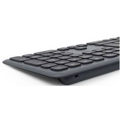- Barva: Černá, barevný tón: Tmavě šedá/černá, tvarový faktor myši: Pravák, layout klávesnice: QWERTZ (německy), připojení: Zástrčka USB typ a, připojení: RF/Bluetooth 2.4 GHz, verze Bluetooth 5.2, rozsah dpi: 1200/1600/800, kompatibilní operační systémy: Android 8.0 nebo vyšší / MacOS 11 nebo vyšší / Windows 11 / 10 / iOS 14 nebo vyšší / iPadOS 14 nebo vyšší, Max. DPI: 1600, dosah: 10 111 m, speciální funkce: Stav nabití baterie LED / prohlížeč tlačítek / vypínač / úsporný režim, počet multimediálních tlačítek: 14, provedení: Pravák / standardní myš / celoformovací klávesnice, materiál: Plastová/Post Consumer materiál, počet tlačítek: 6 tlačítka včetně Scroll kola, laserové kolečko (materiál): Tichý, Slideing pady kláves: Polytetrafluorethylen (PTFE), optická grafika: tlačítková mechanika: Scissormechanika, rozměry myši B x H x T: 6,8 x 3,6 x 9,8 cm, rozměry klávesnice B x H: 44,5 x 1,7 x 12,9 cm, hmotnost myši: 65 g, hmotnost klávesnice: 558 g, počet baterií: 4, typ baterie: AAA, obsah sady v ks: 3, požadovaný maximální výkon síťové myši: není relevantní, potřebný maximální výkon síťové klávesnice: není relevantní, minimální výkon síťové myši: není relevantní, minimální požadovaný výkon síťové klávesnice: není relevantní, síťový zdroj součástí dodávky myši: ne, síťový zdroj součástí dodávky: ne, USB PD myš: ne, USB PD klávesnice: ne