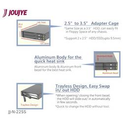Kvalitně zpracované hliníkové pouzdro nabízí místo až pro dva pevné disky SATA nebo SAS o velikosti 6,4 cm (2,5") s montážní výškou až 9,5 mm.