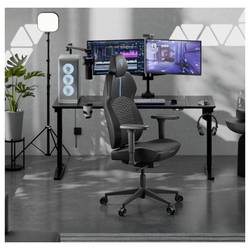 - Ergonomická herní židle, 3D x 360 loketní opěrky, synchronní kolébkový přepínač, mechanika SYNC4, látkové polstrování, hladký potah z umělé kůže