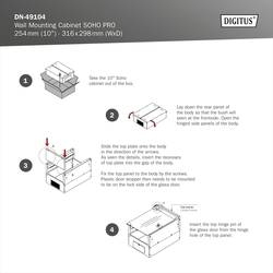 Kompaktní řešení SOHO PRO série 254 mm (10") instalují síť tam, kde chcete. Nástěnný kryt, který je k dispozici ve třech výškových jednotkách (6HE, 9HE, 12HE), je vybaven plnými dvířky a kabelovou průchodkou na střeše a podlaze. Pár galvanizovaných, s čitelnými výšovými jednotkami popisovanými 254 mm (10") profilovými lištami je instalován uvnitř. Ty lze nastavit do hloubky. Každá skříň je odolná ocelová konstrukce z až 1,5 mm silného ocelového plechu. Barva ve formě elektrostatického práškového nátěru se vyskytuje ve standardní barvě šedá (RAL 7035) a černá (RAL 9005). Může být provedena výměna dveřních dorazů. Dodává se v nemontovaném provedení. Montáž probíhá v několika málo krocích a je díky přiloženému návodu krok za krokem velmi snadná.