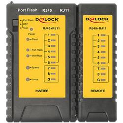 S tímto testerem kabelů Delock lze rychle a jednoduše otestovat zapojení síťových kabelů. Pro kontrolu již položených kabelů lze vzdálenou jednotku upevnit na zařízení. Funkce vyhledávání portů signalizuje připojení portu na přepínači blikající LED.