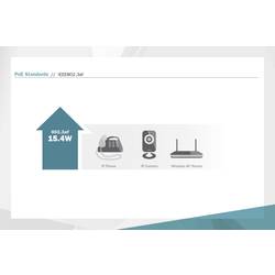 - PoE výstup disponuje omezovačem proudu, ochranou proti zkratu a automatickou identifikací a klasifikací koncového zařízení.
