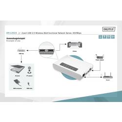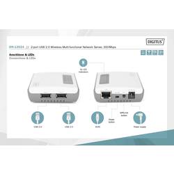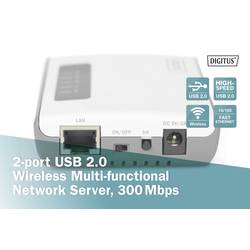 Digitus DN-13024 síťový print server USB-A, LAN (až 100 Mbit/s), Wi-Fi 802.11 b/g/n