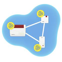 V síti Wi-Fi lze spojit více distribuovaných přístupových bodů Wi-Fi (např. FRITZ!Box a repeater FRITZ!Repeater) do jediné inteligentní sítě Wi-Fi. Distribuované zařízení FRITZ! Si navzájem vyměňují a optimalizují výkon všech zařízení WLAN. Inteligentní technologie jako Crossband Repeting, Banksteering a rozšířený automatický kanál zajišťují vždy optimální Wi-Fi pokrytí. Díky tomu je nejlepší připojení vždy tam, kde je právě zapotřebí. Streaminging, hraní her a stahování se snadno a s maximální rychlostí dostanou do posledního úhlu každého nože. Celá Wi-Fi má navíc jen jméno, heslo a je bezpečně zašifrována.