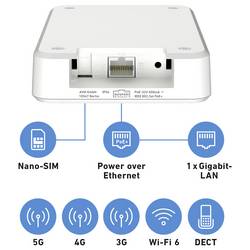 Fritz!box 6860 5G nabízí s Wi-Fi 6 rychlosti až 2.400 (5 GHz) a 600 Mbit/s (2,4 GHz). Jako centrála Wi-Fi Mesh zajišťuje nejlepší pokrytí sítí tím, že všechny přístroje FRITZ! Tvoří společnou síť (Mesh) a optimalizují výkon WLAN. Při vnější instalaci lze přes LAN připojení k dodávanému zdroji PoE kombinovat s FRITZ!Repeater nebo s dalším FRITZ!boxem (např. FRITZ!Box 4050) a zlepšit tak domácí Wi-Fi a DECT napájení.