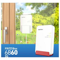 Nový FRITZ!box 6860 5G přináší ultrarychlé mobilní internetové stránky s rychlostí až 1,3 Gbit/s do bezdrátové domácí sítě. Jako Fixed Wireless Access podporuje jak 5G (NSA, SA), tak LTE. S výkonnou Wi-Fi Mesh s Wi-Fi 6 rozvádí bezdrátově data až do 3 Gbit/s po celém domě. Díky kompaktnímu designu a napájení přes Power over Power Ethernet lze všestranný FRITZ!box 6860 5G používat jak uvnitř, tak venku. Základní stanice DECT pro telefony a Smart Home aplikace doplňuje široké spektrum výkonu.