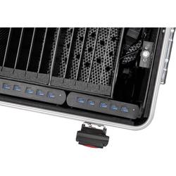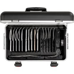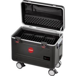 Kompaktní nabíjecí a přepravní kufr PARAPROJECT® MicrobCase TC15 nabízí místo až pro 15 tabletů. Díky integrovaným modulů TwinCharge lze připojit všechna koncová zařízení až do 11", která jsou nabíjena přes USB-a a USB-C®. Inteligentní moduly TwinCharge se navíc automaticky přizpůsobí prostřednictvím USB-PD Power Delivery a nabíjejí se podle norem QuickCharge. Díky tomu jsou vaše zařízení po co nejkratším čase opět provozuschopná. Hlavní spínač integrovaný zvenčí a přepěťová ochrana poskytují potřebnou bezpečnost při každodenním použití. Díky dvěma kapse v zavazadlovém krytu nabízí adaptér PARAProtect® MicroCase TC15 místo pro drobné díly jako kabely a pera. Kufřík pro tablety Premium je vyroben z vysoce kvalitního černého plastu X-ABS a má praktický úchyt na kolečkách se 4 lehkými kolečky, z nichž dvě lze zaaretovat. Kufr je mimořádně odolný a lze jej pohodlně přenášet z místa použití. Číslicové zámky poskytují dodatečnou ochranu před neoprávněným přístupem. Dva axiální ventilátory integrované v podlaze a teplotní senzor navíc zajišťují optimální cirkulaci vzduchu a spolehlivě chrání před přehřátím.
