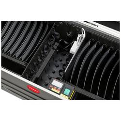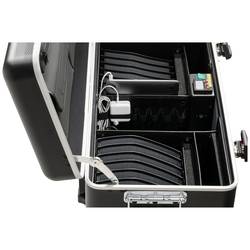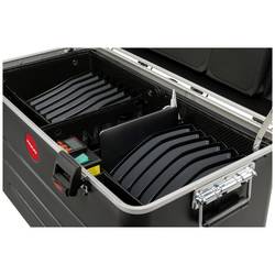- div. Přihrádky a tašky na příslušenství a drobné díly; nabíjecí jednotka6 přihrádky pro tablety a tabletyÚložný prostor pro Master notebook a odkládací prostor pro příslušenství, např. přístupový Point a routerNavíc: Ventilační otvory ve víkuNavíc 2x aktivní ventilátor v elektronické přihrádceTeplotní senzor (ochrana proti přehřátí)Programovatelný, interní časovač