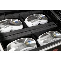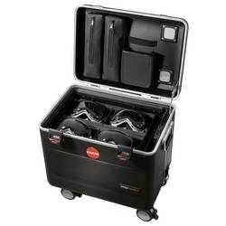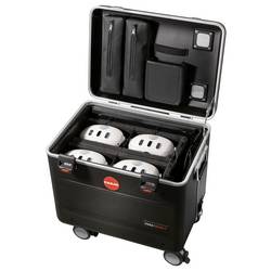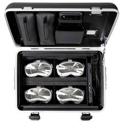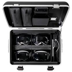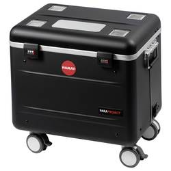 Odolná a ultralehká konstrukce PARAPROJECT® Case VR4 poskytuje bezpečný transport, nabíjení a uložení až čtyř VR brýlí podporujících nabíjení přes USB-C®. Díky inovativnímu modulu TwinCharge lze všechna koncová zařízení pomocí konektorů USB-C® rychle a efektivně nabíjet až 45 W na jedno zařízení pomocí USB-PD (Power Delivery) a QuickCharge. Předinstalované kabely USB-C® jsou vybaveny L-koncem se šikmými 90°, které lze umístit na stranu zařízení. Také Master notebook Master nebo tablet do 16" nebo router může být připojen k další 230V eurozásuvce v kufříku. Čtyři nastavitelné polstrované přihrádky zajišťují bezpečné místo pro brýle pro virtuální realitu různých výrobců a velikostí. Příslušné řadiče lze rychle uložit do úložných tašky v kufru. Kufr je také umístěn na vnější straně kufru a je vhodný pro individuální Logoplošky nebo také pro inventarové pokyny. Pro zapůjčování se hodí obzvlášť ideal. Obzvláště praktické jsou také kapsy na zip na drobné díly, integrovaný ve víku kufru, a samostatná přihrádka na routeru. Optimální ventilace zajišťuje ve víku a podlaze integrované větrací otvory, které zajišťují efektivní cirkulaci vzduchu v kufru. Dva číselné zámky umístěné na těle spolu s černým vnějším pouzdrem z plastu X-ABS zajišťují komplexní ochranu pouzdra PARAPROJECT® Case VR4. Kufr je navíc vybaven dvěma bočními držadly, 4-násobným teleskopickým výstupem a 4 lehkými koly, z toho 2 s úchyty na kolo. Díky tomu nestojí nic v cestě pohodlnému a bezpečnému ovládání.