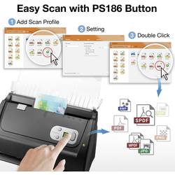 spolehlivé a kompaktní kanceláře SmartOffice PS186 s rychlostí skenování 25 stránek za minutu nabízí nejen možnost digitalizovat řadu dokumentů, ale také ještě jednodušší správu a organizaci dokumentů. Součástí dodávky je nový software Plustek DocAction II s novým a uživatelsky přívětivým rozhraním, které ještě více usnadní vytváření, konfiguraci a správu až 23 individuálních skenovacích profilů. Ideální ideal pro domácí uživatele, domácí kanceláře nebo malé kanceláře, vám pomůže s PS186. Na faktuře, dokladu, psaní nebo pohledy, s prostorově úsporným skenerem a rozsáhlými funkcemi si můžete uschovat přehled vašich dokumentů.