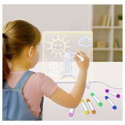 Proměňte kreslení a psaní na úžasný zážitek! Akrylátová deska Luminous vnese do vašeho dítěte kreativní nápady jemnými světly. Je odolný, znovu použitelný a velmi snadno ovladatelný. Součástí dodávky je 7 pestrých, opět vymazatelných tužek. Díky sklápěcímu držáku je stabilní a je perfektním společníkem pro fantazii hodiny - ať už v interiéru nebo venku. Nechte svou kreativitu jasně nazářit!