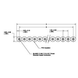 Plochý kabel pro samořezné svorky srastrem 1,0 mm, zapsáno u UL. Průřez žíly se 7 licnami AWG 28. Kabel je vyroben z šedé PVC izolace. Žíly jsou od sebe snadno oddělitelné.